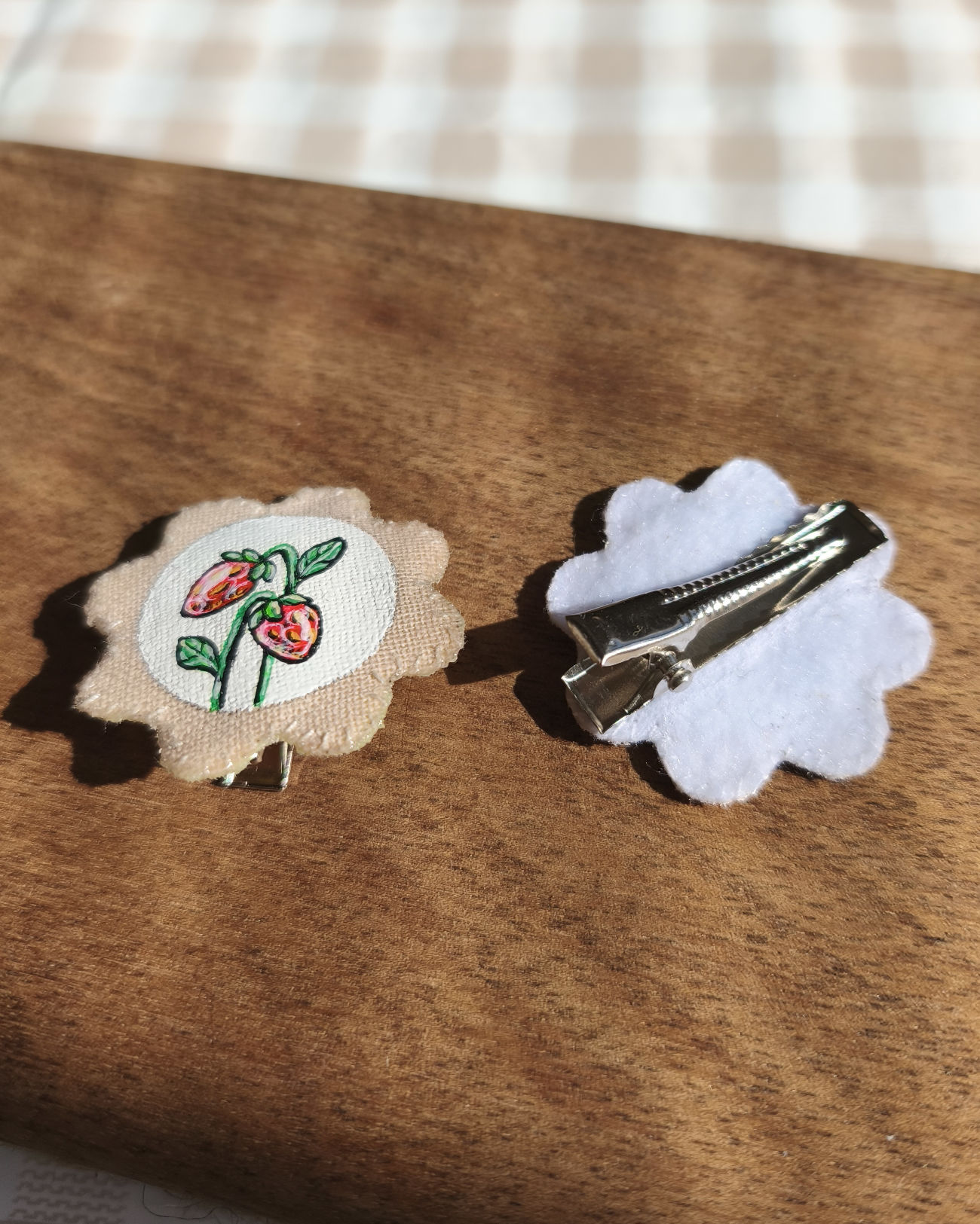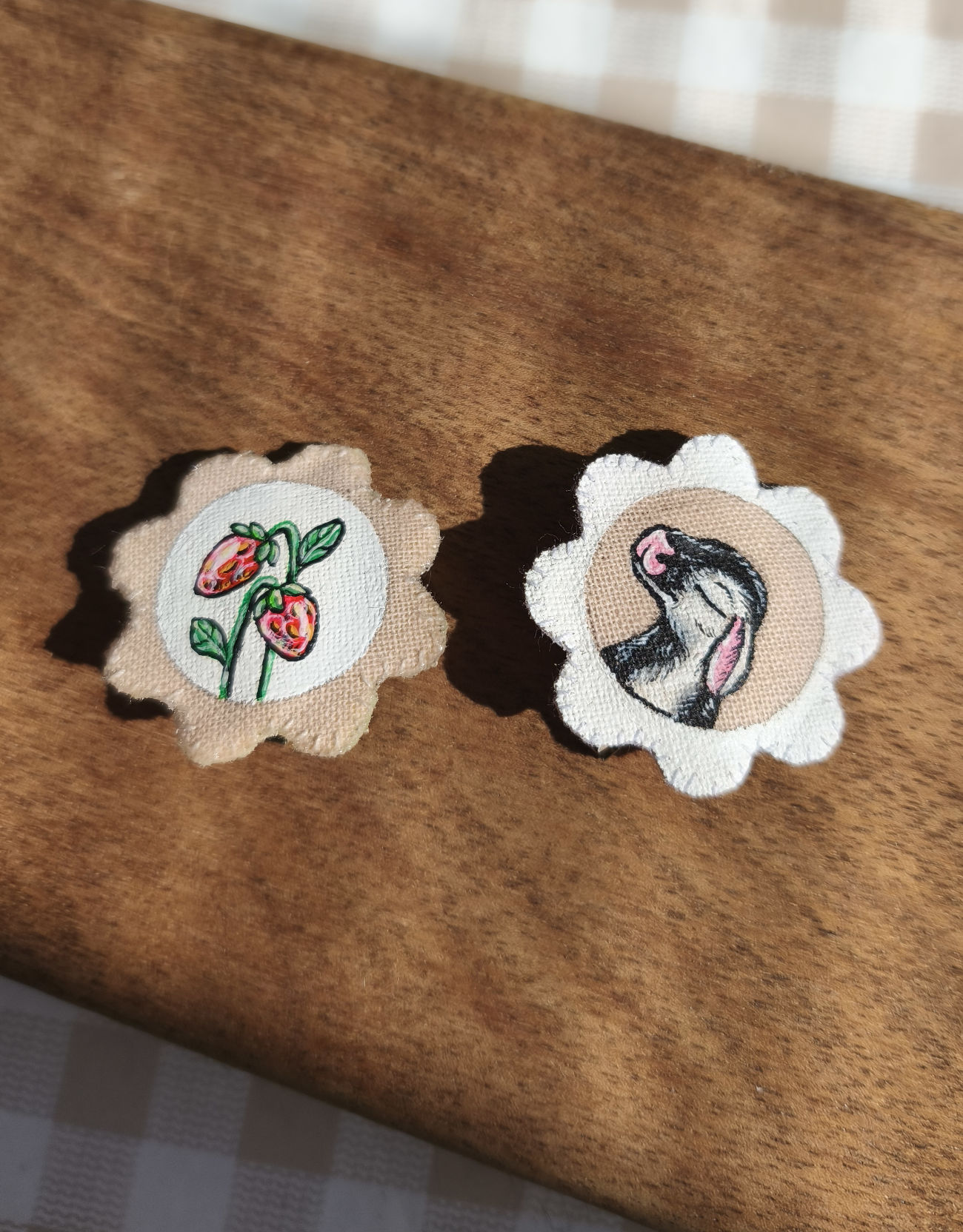 Ručne šité textilné sponky s autorskou maľbou a originálnym rukopisom. Ideálny doplnok pre niekoho, kto má rád jedinečnosť a originalitu. Môžu byť tiež nápaditým darčekom.
